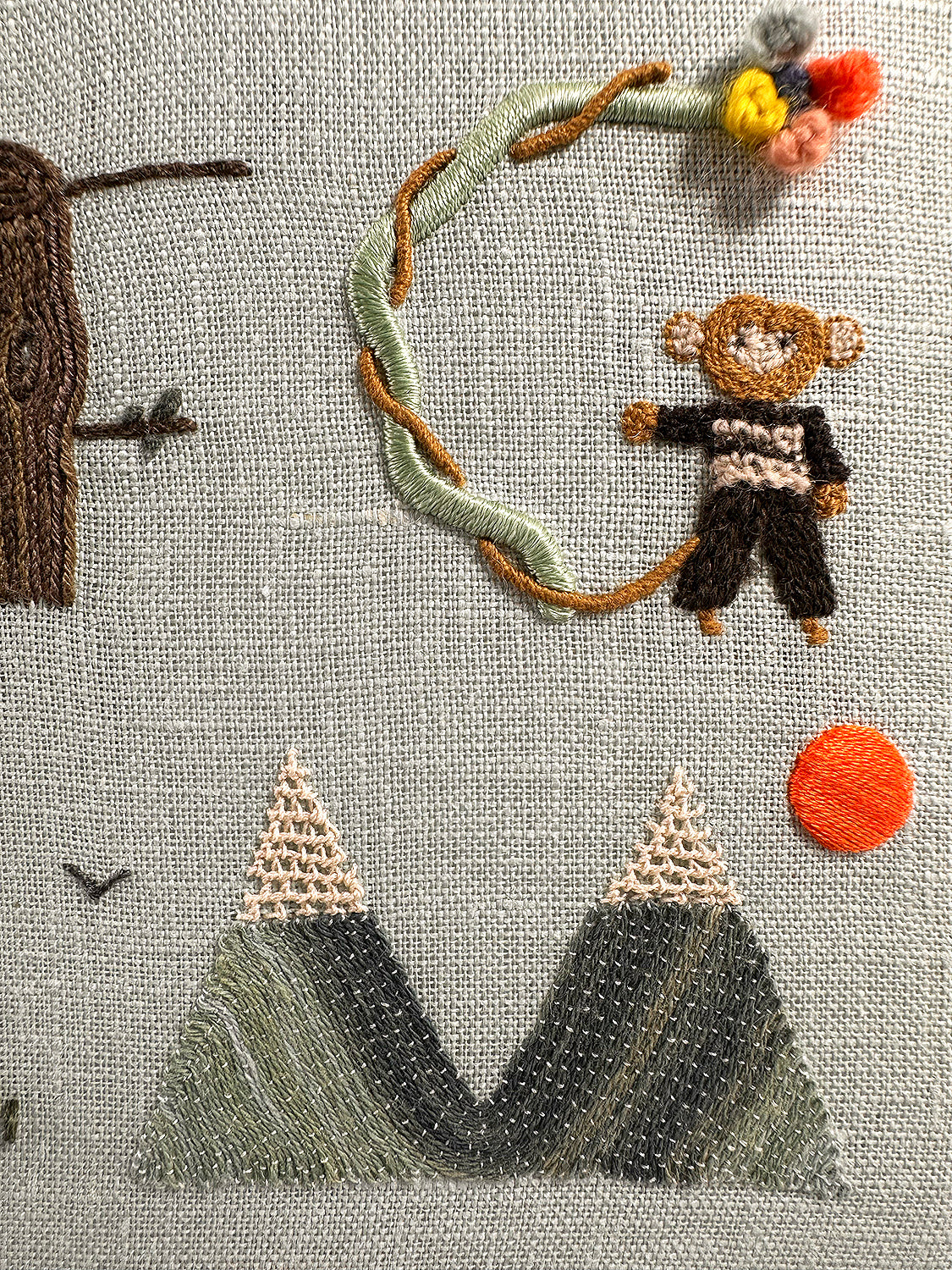 Tanto en Forest Alphabet como en Play & Stitch, los estudiantes aprenderán las mismas técnicas de bordado, incluyendo el punto colcha, el punto toalla, el punto quaker, el nudo argentino, el nudo cuadrado argentino y el picot argentino, entre otros. Sin embargo, el tema y el enfoque pedagógico de estas técnicas son completamente diferentes en cada taller.